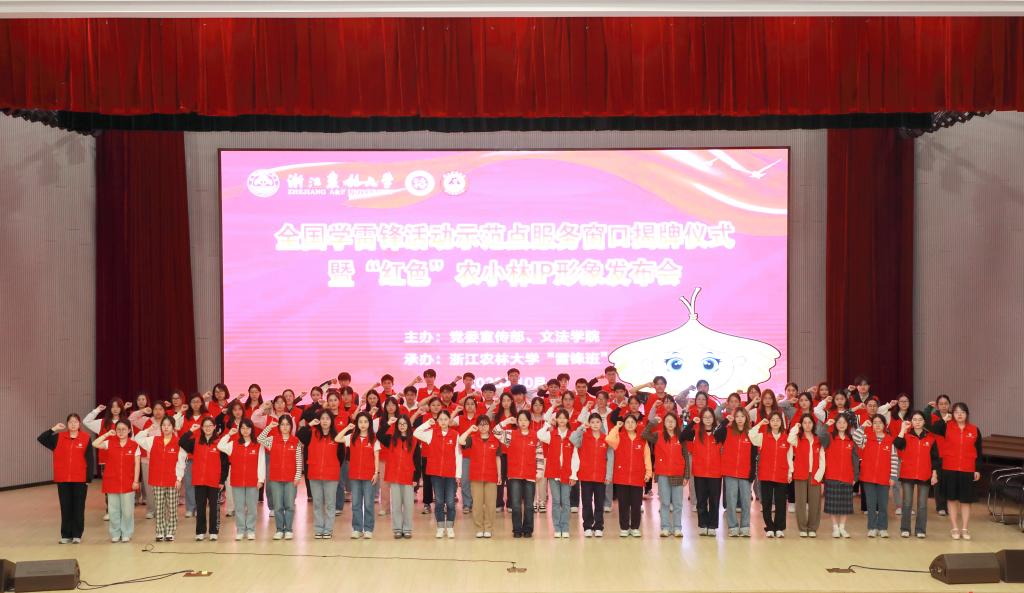 10月20日下午,全国学雷锋活动示范点服务窗口揭牌仪式暨“红色”农小林IP形象发布会在衣锦校区报告厅举行。校党委委员、宣传部部长倪建均,校学工部、校团委相关负责人,学院党委书记朱红东及其他领导班子成员、雷锋班指导老师、雷锋班代表出席活动。