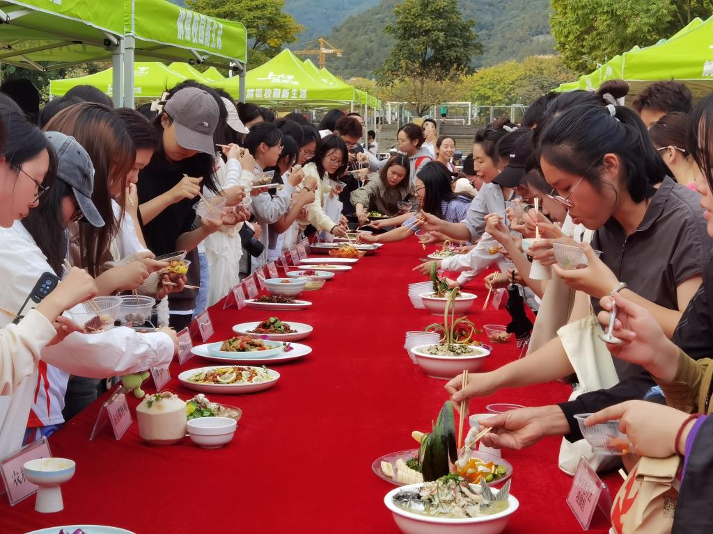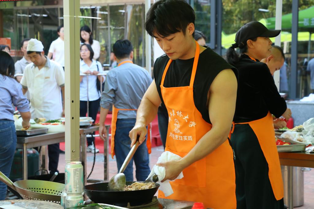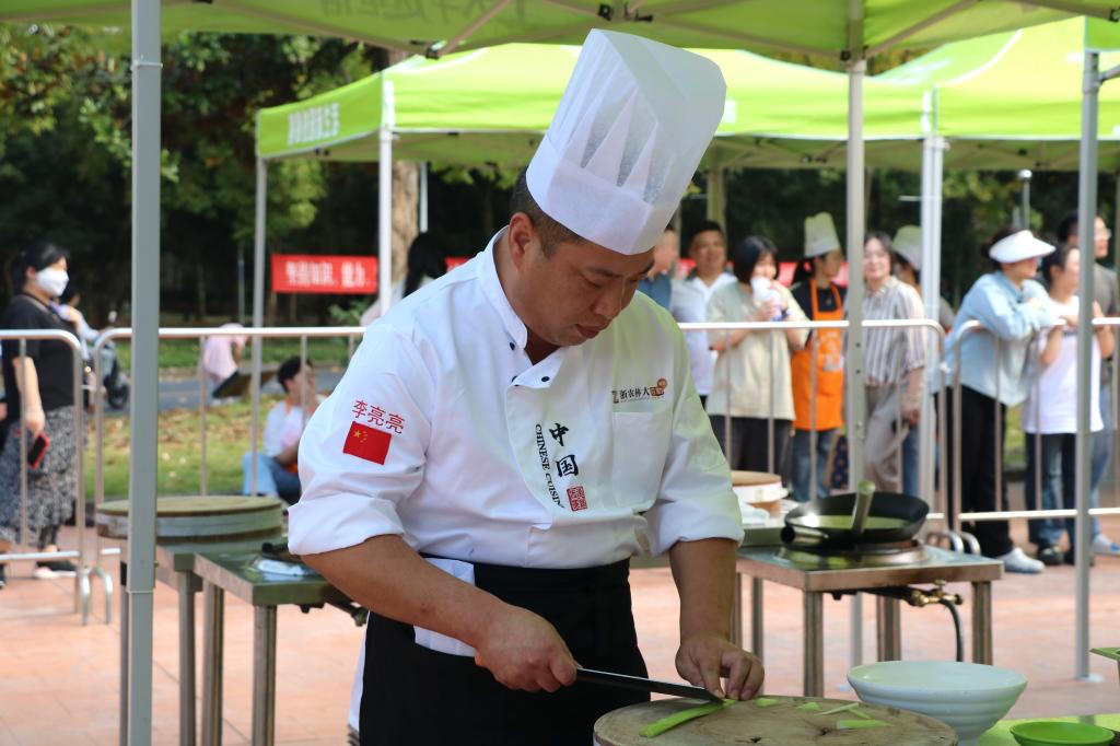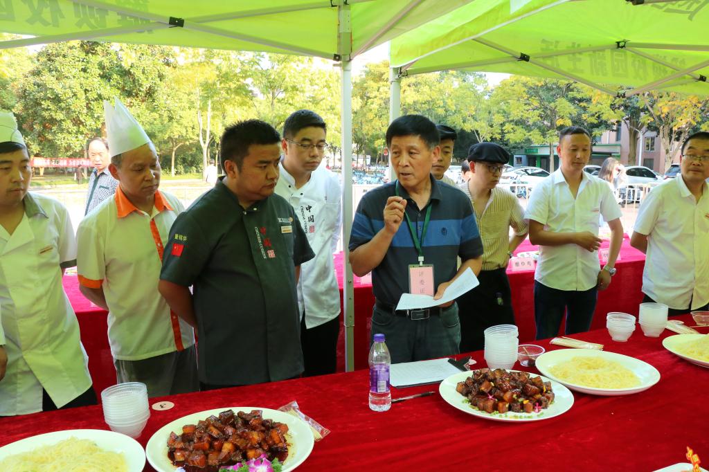 11月4日,后勤中心“美食在农林”生态美食周之厨艺大赛在东湖食堂广场举行。临安区餐饮行业协会秘书长余小建、中国烹饪大师赵建林担任大赛评委。