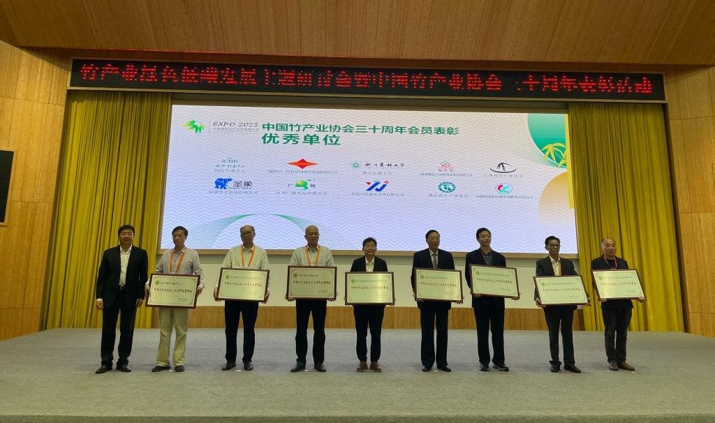 中国竹产业协会专家委员会名誉主任、国际竹藤组织董事会联合主席江泽慧为大会发贺信,中国竹产业协会三十周年优秀会员表彰活动由中国竹产业协会秘书长杨淑艳主持。