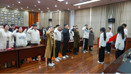 会上,全体起立奏唱国际歌后,俞欢老师宣读学生党建服务中心换届文件,主席台领导为学生党建服务中心主任及各部门负责人颁发聘书。学生党建服务中心马智聪代表中心全体成员进行发言。