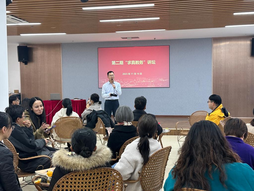 11月16日,主题为“科学规范排课,加强选课指导”的第二期“求真教务”讲坛在校活动中心演艺吧成功举行。教务处处长郭建忠出席。教务处全体人员及全体教学秘书参会。