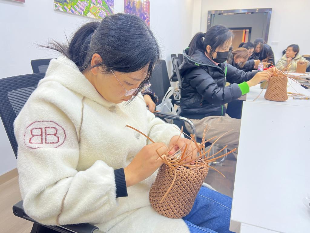 活动开始,谢书香为大家讲解了藤编包的基本技巧和要领,随后向大家分发编织材料。女职工们虽然是第一次接触藤编,但都兴致高涨,认真细致地进行编织。一双双巧手在藤条间交错翻飞。经过不懈努力,一只只色彩绚丽的藤编手提包制作完成,大家满意地拿着手中的作品,都对藤编这项非遗传统技艺赞叹不已。