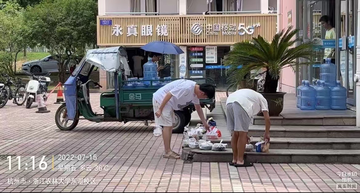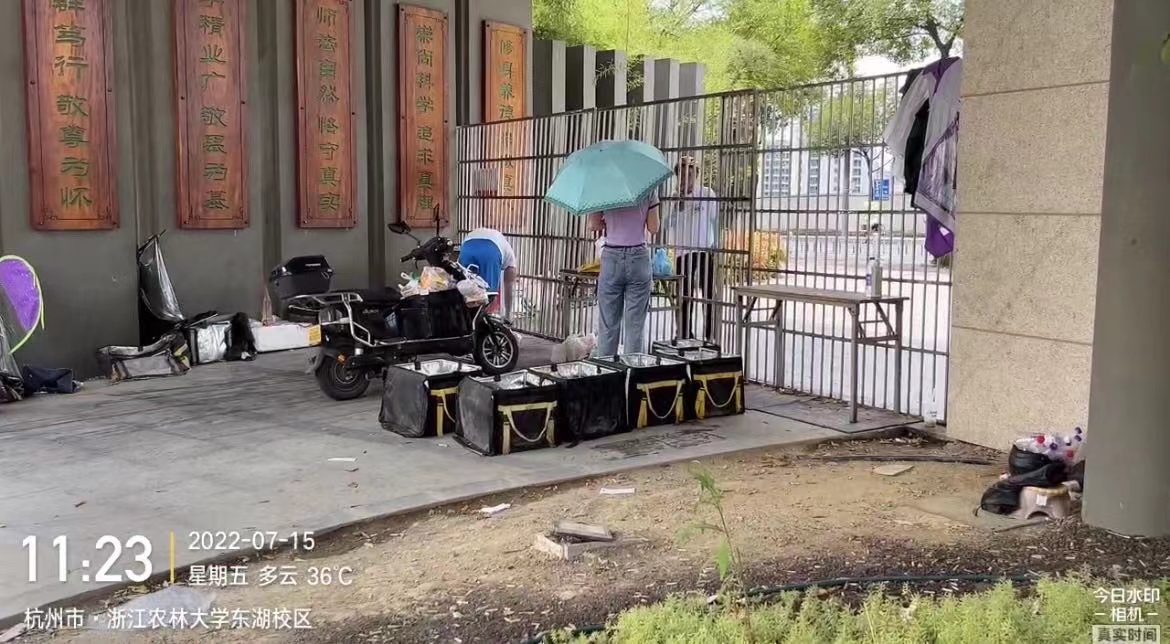 在外卖驿站建立之前,同学们的外卖散落在各学生公寓楼台阶上,每到就餐高峰,由点成片,“蔚为壮观”,行人也要避道而行。