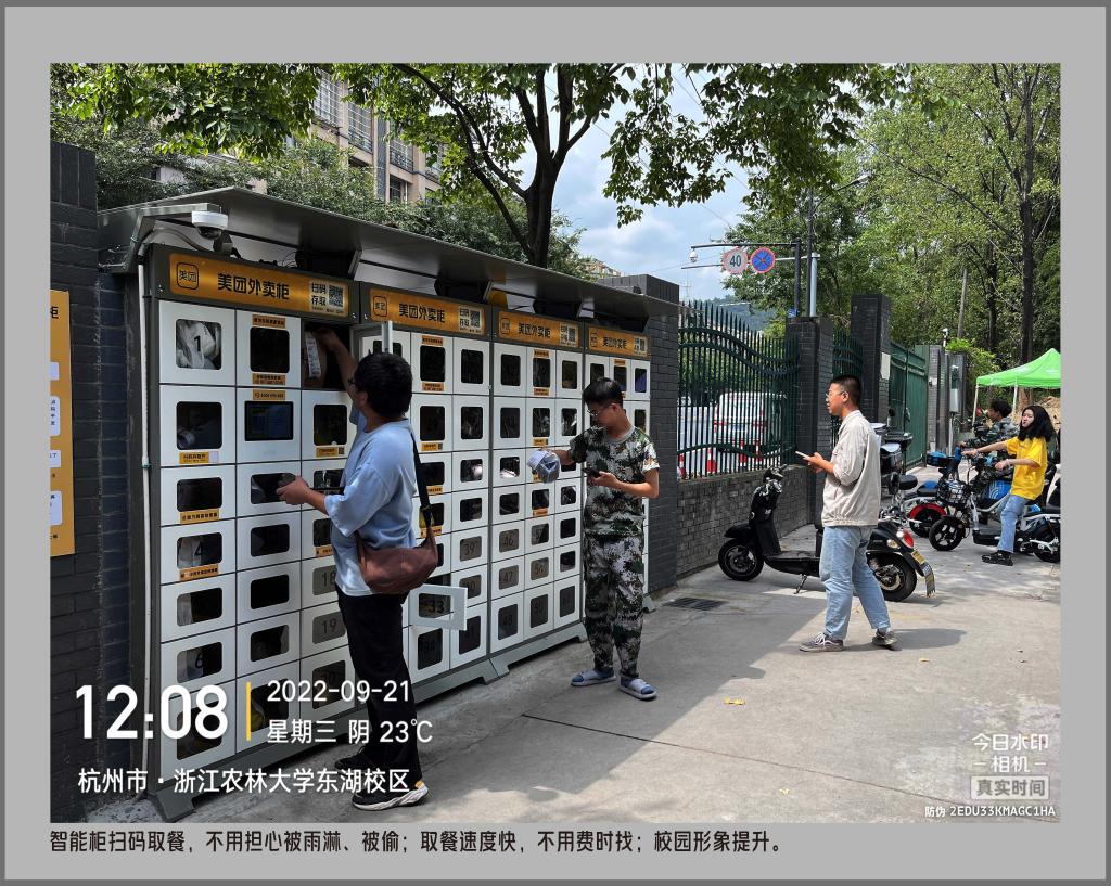 2022年,学校根据学生公寓分布情况选定点位,装配外卖智能取餐柜,建设了标准化外卖驿站。