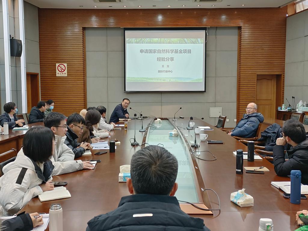 12月26日,竹子研究院举行国际竹藤中心王戈研究员、程海涛研究员聘任仪式,王戈研究员作国家自然科学基金申报培训。人才办主任孙伟圣、竹研院党政班子成员及全体教师出席聘任仪式及培训会。