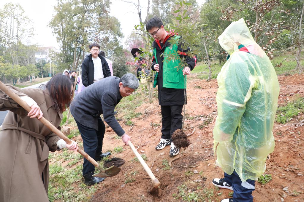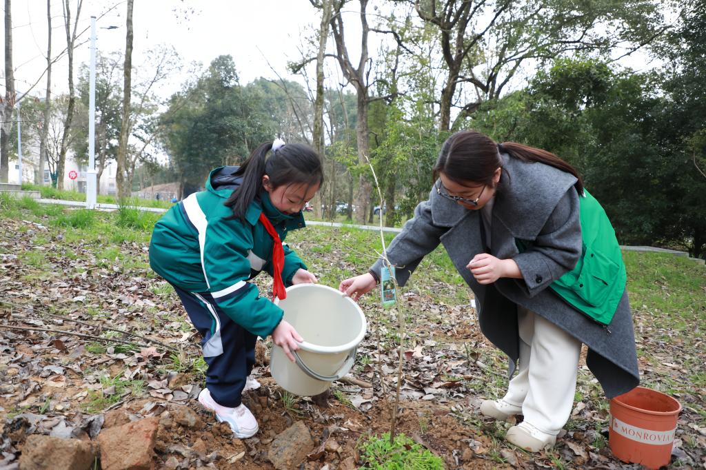 3月4日,在第61个学雷锋纪念日、第46个植树节即将来临之际,“红绿育嘉木 同心向未来 BEAT365英国官网雷锋班—衣锦小学钱学森班”植树护绿学雷锋志愿服务活动,在东湖校区B区公共区域举行。林生院党委书记郑炳松,校新闻中心主任、党委宣传部副部长陈胜伟,林生院学生工作负责人,林生院“雷锋班”植物养护志愿服务队、衣锦小学“钱学森班”学生以及两校师生代表共100人参加活动。