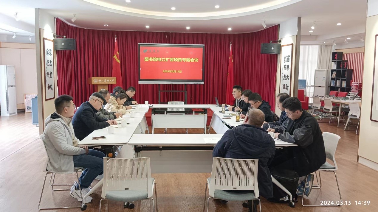 3月13日下午,图书馆组织召开电力扩容、维修项目建设项目专题推进会,邀请校基建处、保卫处、后勤服务中心、园林设计院、浙江八合消防技术服务有限公司等相关人员参加会议。会议由图书馆王欣主持。