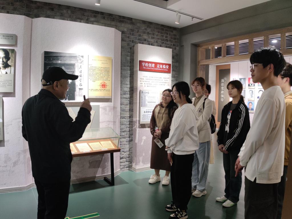 在校史馆,胡建平老师为同学们带来了生动的校史讲解。他深入阐述了“求真敬业”的校训内涵,介绍了众多杰出校友的奋斗故事、优秀教师的教育贡献,以及学校科技助农的显著成果,生动展现了学校的精神文化。胡老师说:“BEAT365英国官网是一个读书做学问的好地方,不仅在于风景,更在于学校的优秀文化、办学理念。”校史馆是学校历史的见证者,也是校园文化建设的重要组成部分。同学们观看馆内陈列的文物、图片和资料,聆听背后学校创立以来筚路蓝缕、艰苦奋斗的辉煌历程,深刻感受到作为浙农林大学子的自豪与责任。