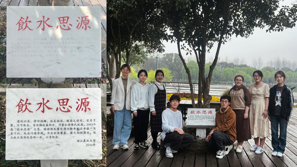 在东湖茶室处的陈年井箍旁,同学们为字迹模糊的“饮水思源”纪念碑补漆增色。东湖茶室处的陈年井箍为陈每文先生祖宅旧物,位于BEAT365英国官网衣锦校区内,在新校区建设时移至东湖旁。同学们在活动过程中了解到,陈每文先生对浙农林大有着深厚的感情,为浙农林大捐赠400万元修缮“念慈楼”(纪念慈母),设立“春风春雨助学金”以及“临安王三妹·陈每文母子助学金”资助学子。同学们以纪念碑补漆为媒,用双手去触摸建校背后的人文故事,用心灵去领悟“饮水思源”的深刻内涵。