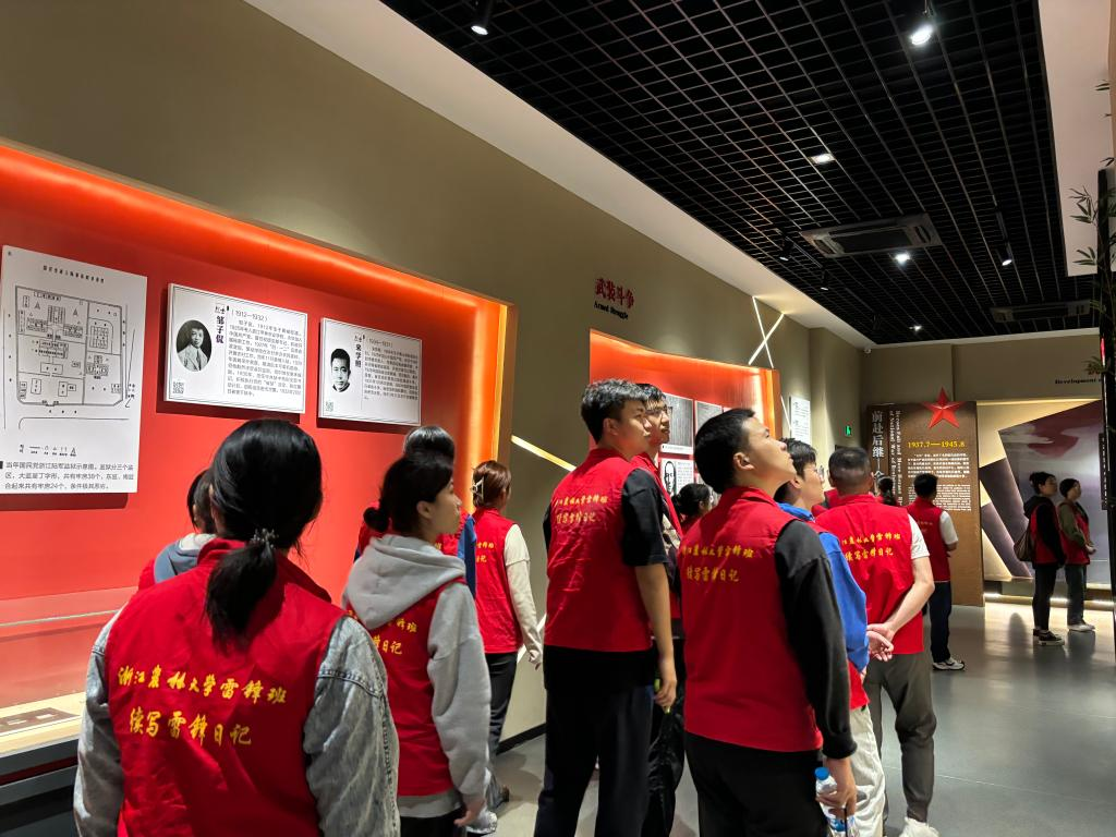 在烈士陵园,师生们首先参观了烈士纪念碑。师生们怀着沉重的心情,庄重的向为国捐躯的英烈们敬献了鲜花,并默哀致敬。教师党员勉励学生党员要牢记历史,牢记为国捐躯的英烈们,牢记自己所肩负的时代使命,在新时代续写属于中华民族的辉煌未来。随后,他们在雷锋班党支部书记杨优优的带领下,参观了临安革命烈士纪念馆,深入了解了临安地区的革命历史和英烈事迹。通过听取生动详细的讲解,师生们对革命先烈的英勇奋斗和无私奉献精神有了更深刻的认识。