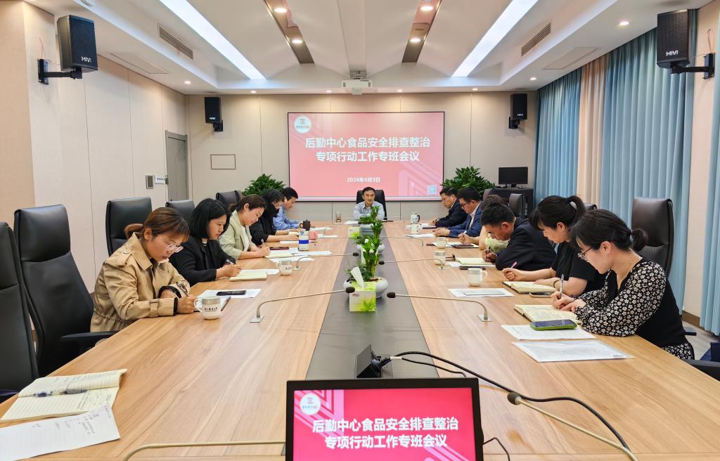 近日,后勤中心召开食品安全排查整治工作第二次专班会议。专班全体成员参加会议。