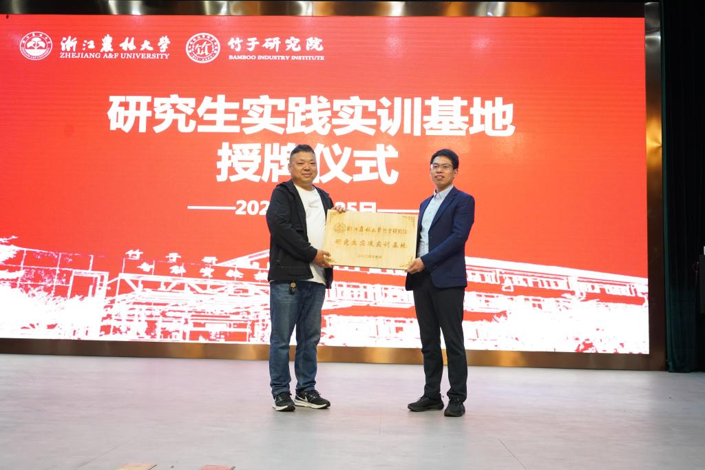 主题党日活动中,竹子研究院与安吉刘家塘村、安吉竹境竹业科技有限公司分别举行了“竹子研究院博士工作站”“研究生实践实训基地”授牌仪式。