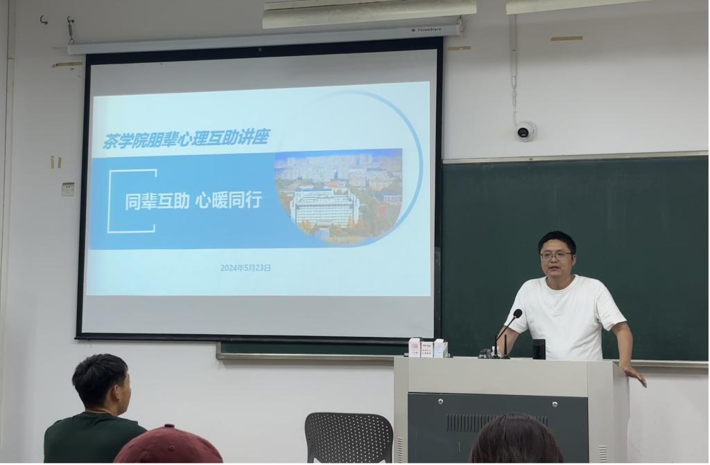 5月23日下午,茶学院在教5-402开展了朋辈心理互助讲座。此次活动邀请了校心理中心专职教师陈亮作专题讲座,学院全体寝室长参与此次讲座。