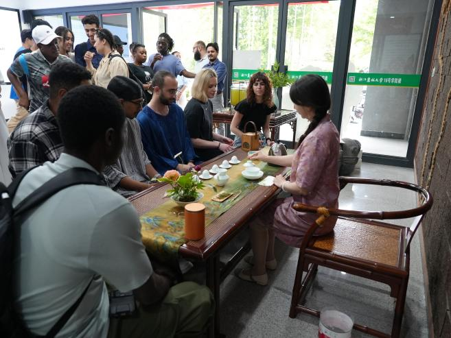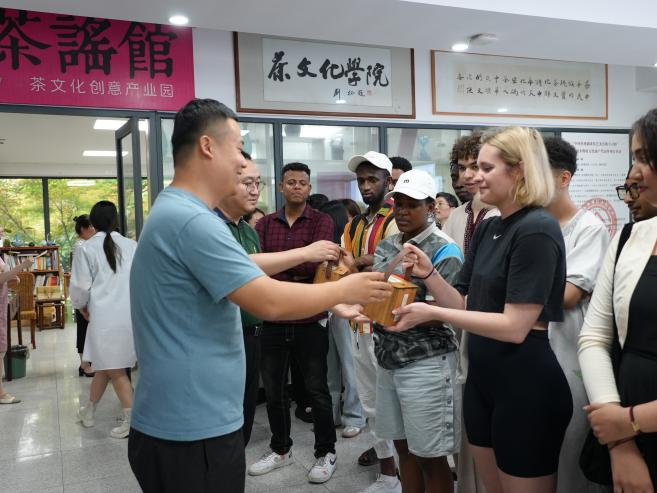 国教学院、茶学院相关负责人共同致活动开幕词,并向国际教育学院师生赠送茶礼,希望师生们常饮茶、饮中国茶。