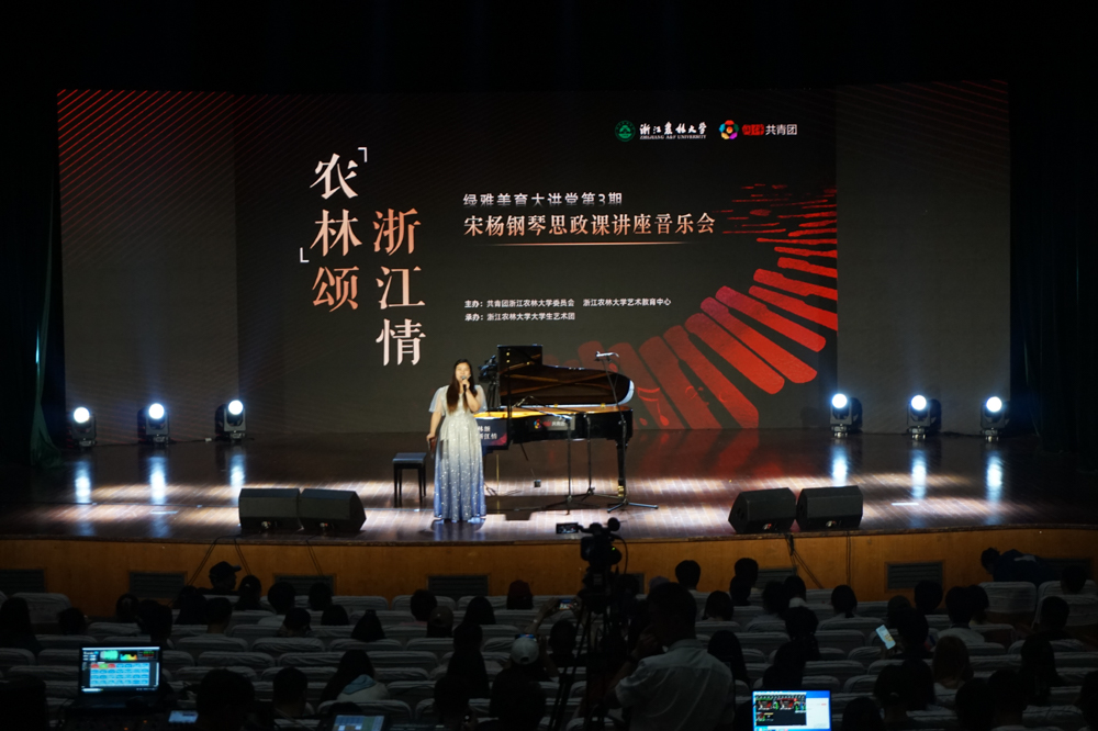 5月28日晚,“农林颂·浙江情”钢琴思政课讲座音乐会在东湖校区举办。钢琴家、管风琴家、羽管键琴家宋杨老师为浙农林大师生带来一场别开生面的钢琴思政讲座音乐会。浙江省司法厅原副厅长、党委委员吴强军,清华大学中国服务创新研究院院长,国家发展和改革委员会首席专家、著名服务经济学家郑吉昌,校团委书记魏玲玲出席活动。