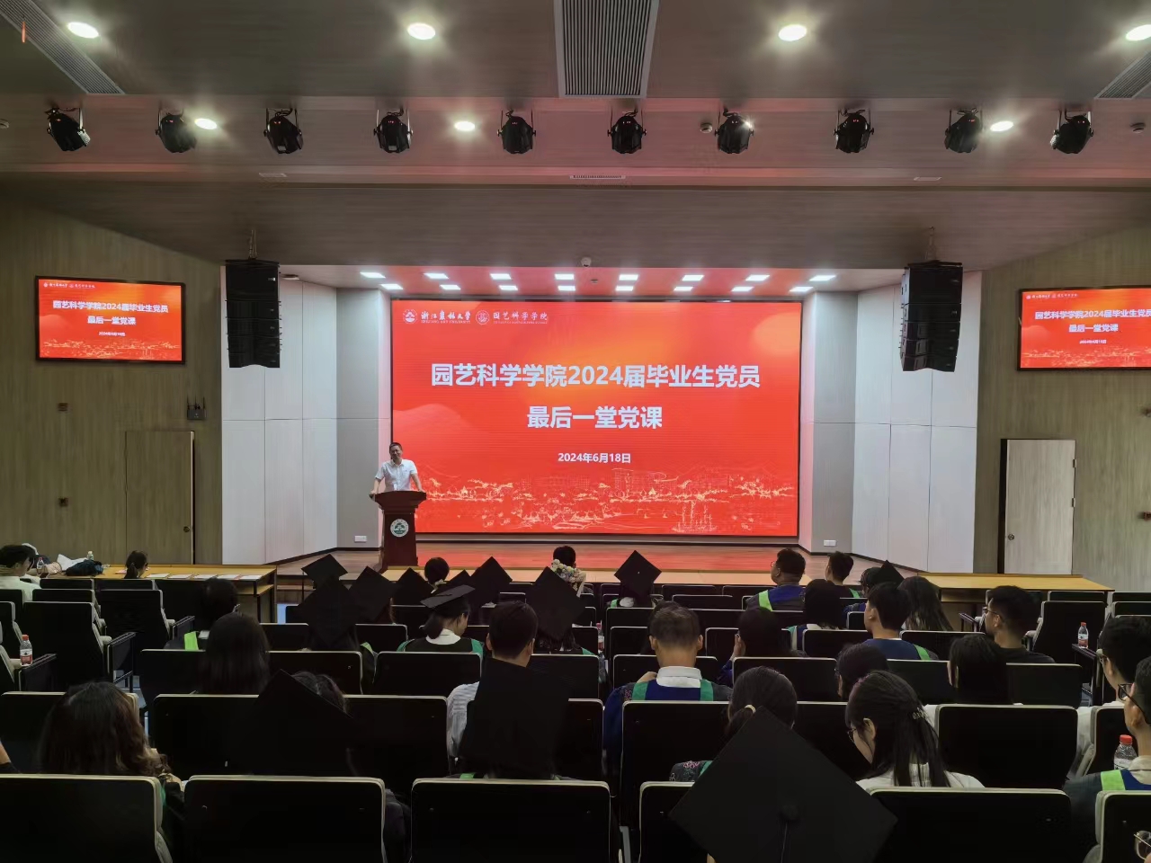 6月18日,园艺学院于学3国际报告厅开展毕业生党员“最后一堂党课”活动。园艺学院党委书记汪和生、学生工作负责人、各学生支部书记及毕业生党员参加。