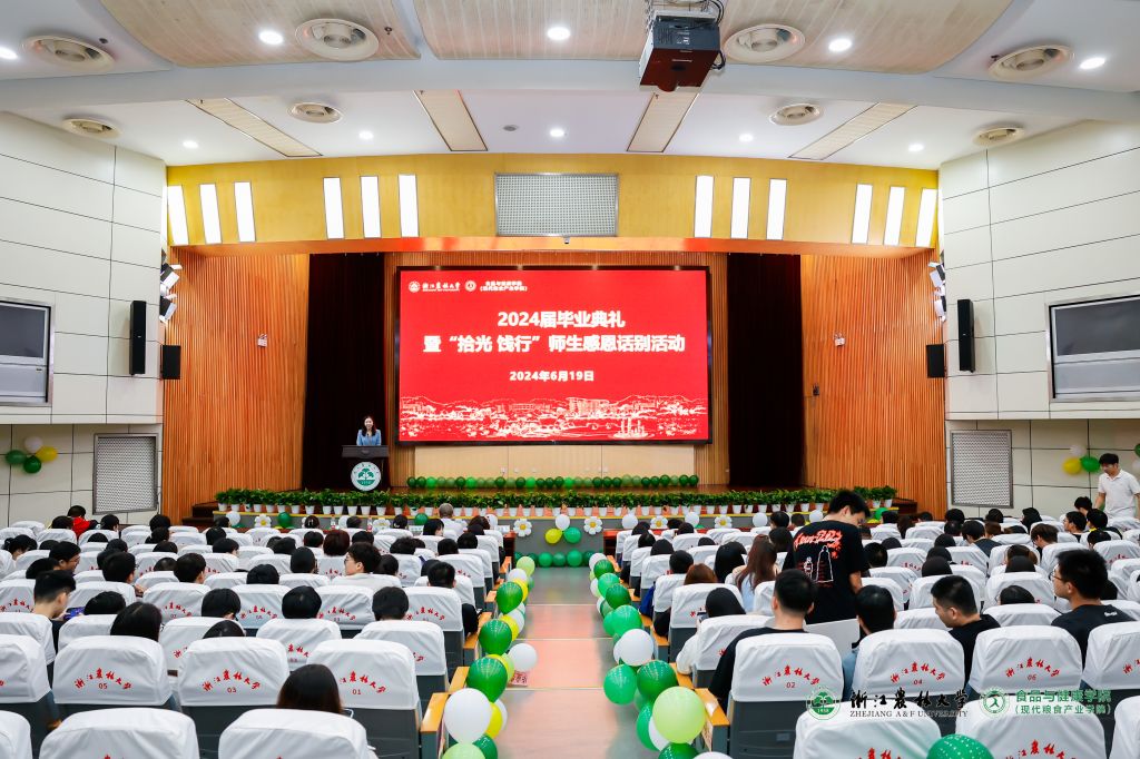 6月19日下午,食健学院2024届毕业典礼暨“拾光·饯行”感恩话别活动在东湖校区图书馆第一报告厅举行。食健学院党政班子成员、学科专业负责人、研究生教育负责人、毕业生导师、班主任、辅导员等300余人,共同欢送2024届毕业生。