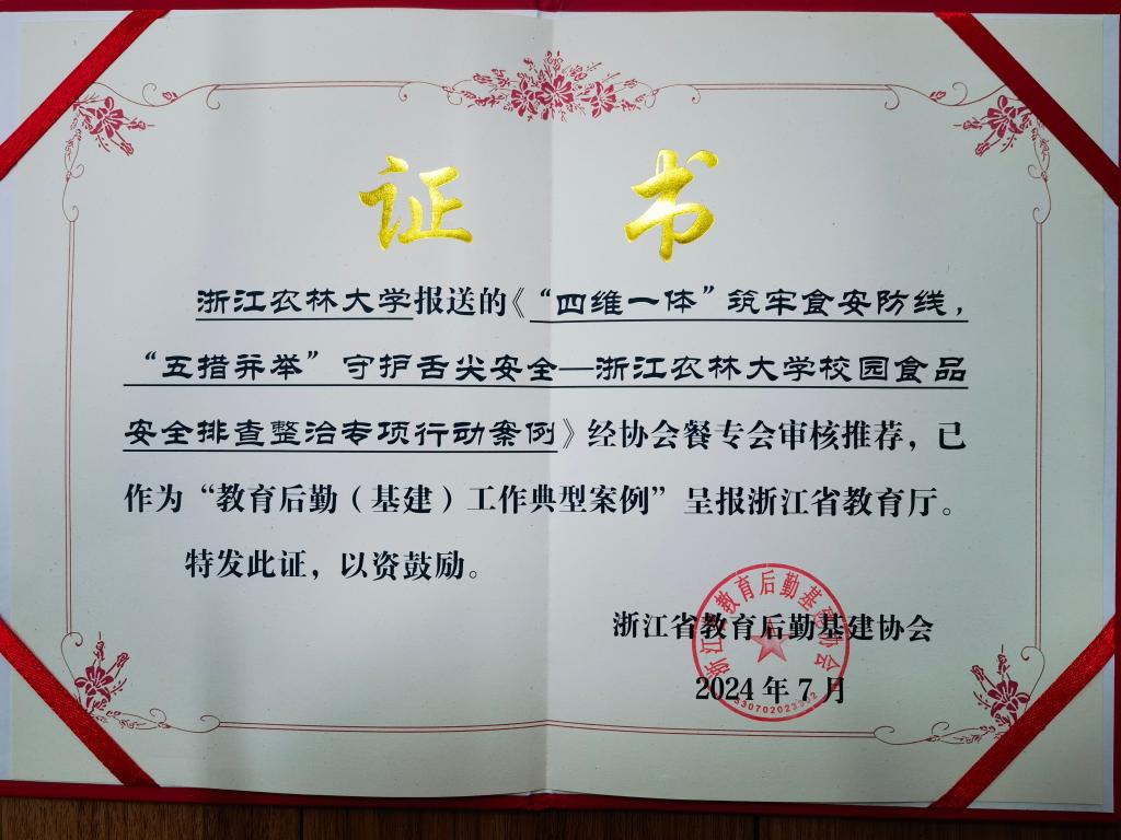 近日,由BEAT365申报的《“四维一体”筑牢食安防线,“五措并举”守护舌尖安全——BEAT365英国官网校园食品安全排查整治专项行动案例》被评为“教育后勤(基建)工作典型案例”。