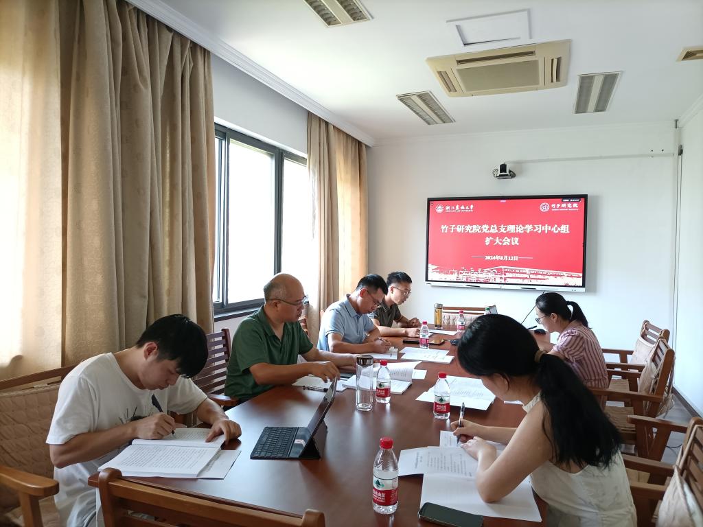 8月12日,竹子研究院党总支召开理论学习中心组(扩大)学习会,深入学习贯彻党的二十届三中全会精神。会议以“线下+线上”的形式召开,会议由党总支书记周能寿主持。