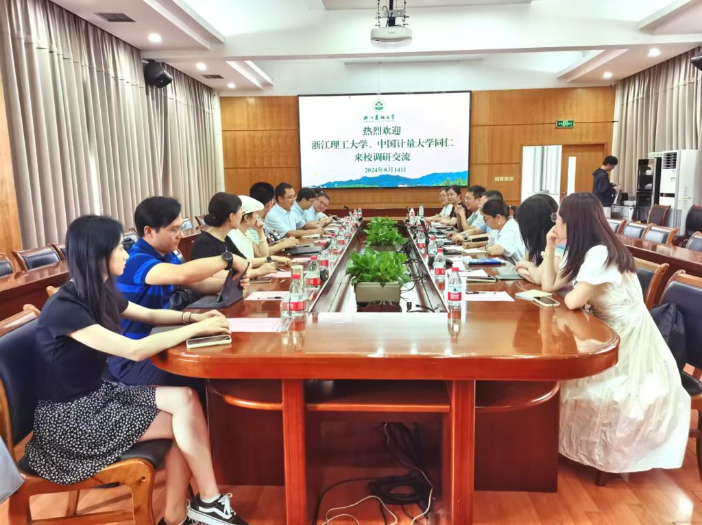 8月14日,浙江理工大学发展规划处处长俞高红、学科建设处处长张琪,中国计量大学发展规划处处长李战国、计量测试与仪器学院党委书记汪俊斐一行来校调研交流。