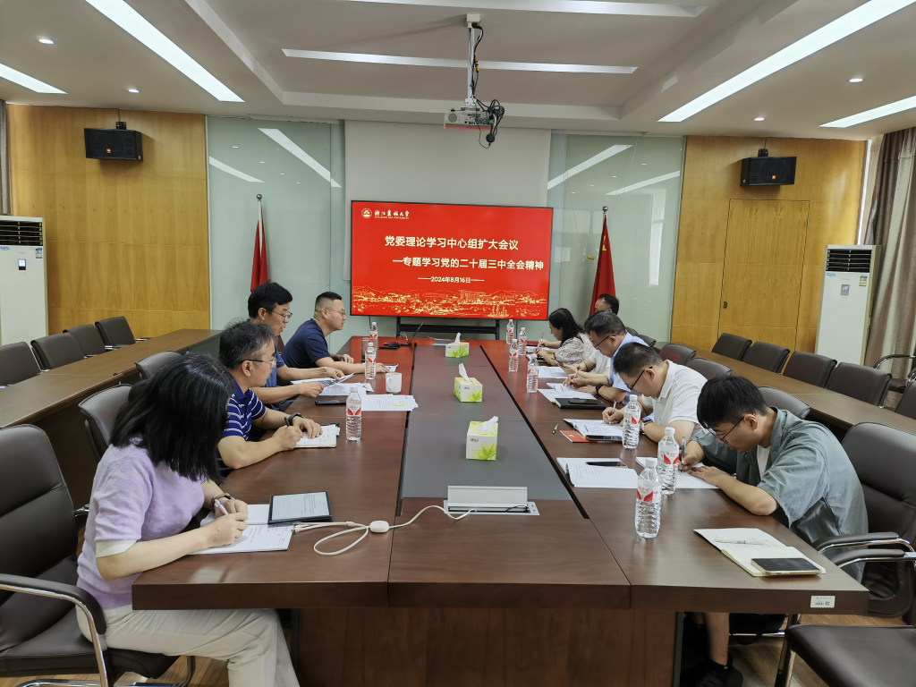 8月16日,林生院党委召开理论学习中心组扩大会议,专题学习贯彻党的二十届三中全会精神。会议由学院党委书记郑炳松主持,理论学习中心组成员及教工党支部书记参加会议。