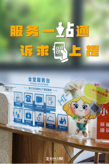 除线下平台试点,“后勤通 通后勤”线上服务平台也同期登录上线,形成 “线上+线下”服务联动,进一步拓宽师生服务反馈渠道。在食堂、餐厅就餐师生可通过扫描张贴在大厅内的农小林二维码反映诉求,各点位负责人本着有求必应的原则开展一对一线上应答,实现全天候受理、实时响应的反馈机制。