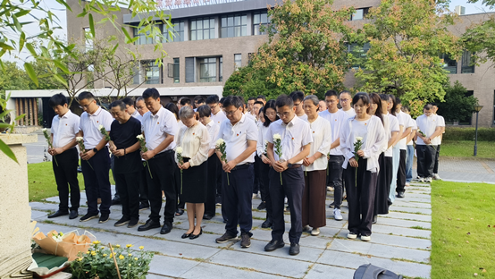 上午7时20分,全体人员手持菊花肃立在张齐生院士雕像前静默,以最深切的哀思表达对张齐生院士的崇敬和怀念之情。随后,大家依次上前,怀着对张齐生院士无私奉献与卓越成就的崇高敬意,深深鞠躬致敬,并将手中的菊花轻轻放置于张齐生院士铜像前。