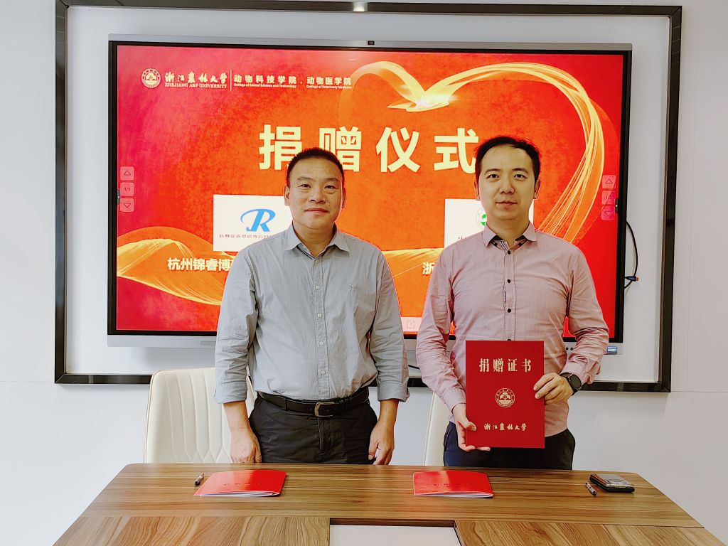 10月12日,杭州锦睿博研教育科技有限公司捐赠签约仪式暨合作签约仪式在东湖校区举行。校教育基金会秘书长哀建国,动科动医学院党委书记魏玲玲,锦睿博研总经理郇笑出席仪式,企业代表、动科动医学院和校团委教师代表参加仪式。