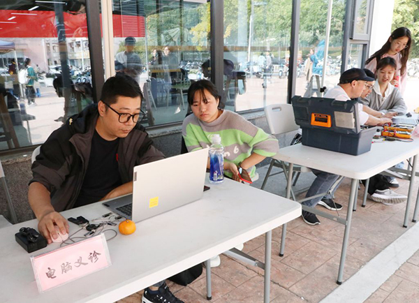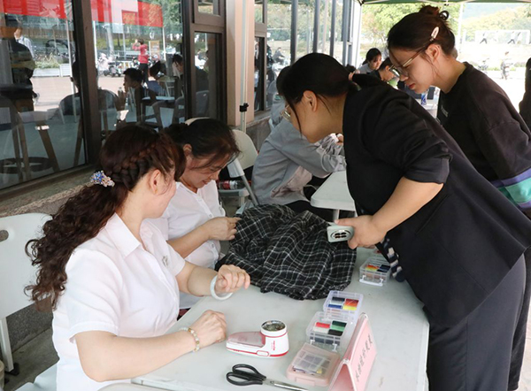 此外,后勤中心还设立了“我为师生办实事”服务台,为广大师生免费提供电脑义诊、小家电维修、衣物缝补熨烫等服务。