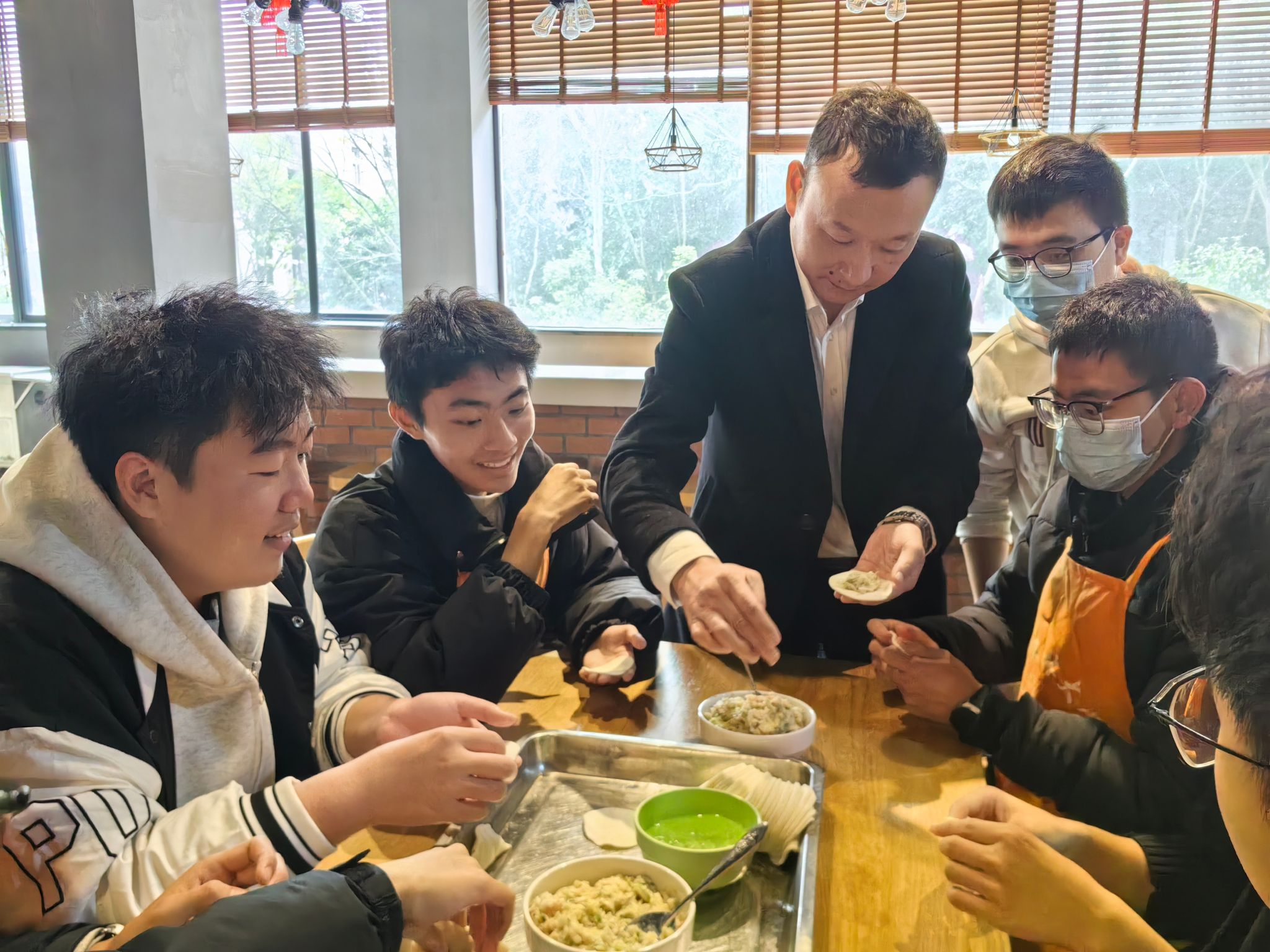 同学们还参与了早餐售卖、米饭烹饪及称重、蔬菜清理等食堂工作,体验食堂工作人员的繁忙日常。参观结束后,同学们围坐在一起参与包饺子活动。在欢声笑语中,一个个形状各异的饺子新鲜出炉。品尝着自己亲手包的饺子,大家的脸上洋溢着满足的笑容。