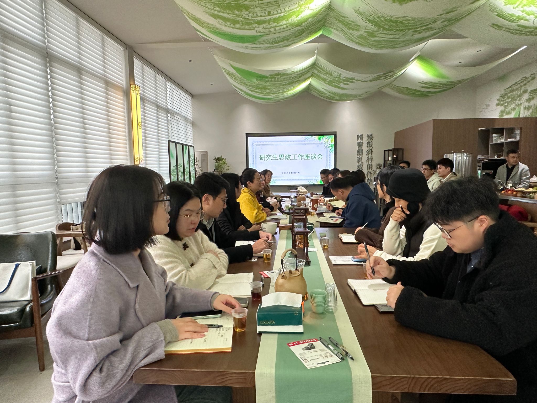 研工部相关负责人对各学院研究生辅导员过去一年的工作给予了充分肯定,并感谢大家对研究生教育管理工作的大力支持。与会人员结合学校和专业特色,共同研讨研究生管理下一年度的工作重点,各学院辅导员在交流工作经验的基础上也进一步明确了个人规划。此次座谈会邀请崔雨晴、谢婷婷、陈秋秋三位老师分别从评奖评优、心理健康、择业就业等学生日常管理工作进行了经验分享。