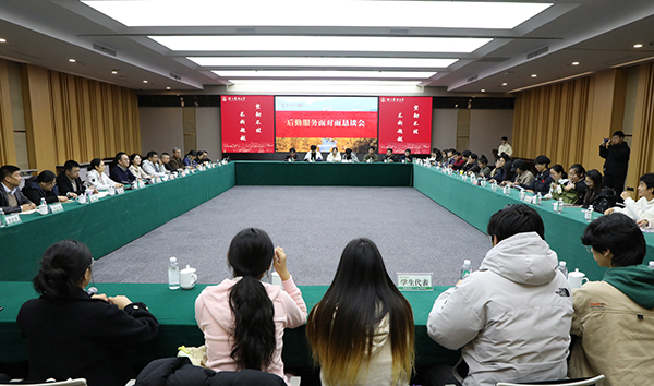 后勤中心向参会人员介绍了后勤基本情况及各行业近一年的服务亮点。同学们就后勤服务质量、菜肴品质、设施设备、住宿环境等提出了意见和建议,后勤中心相关部门负责人进行了详细记录,并就师生关切的问题作出了解答。团委、公管处希望依靠学生组织的力量,充分发挥好桥梁纽带作用,为学校各项事业添砖加瓦。