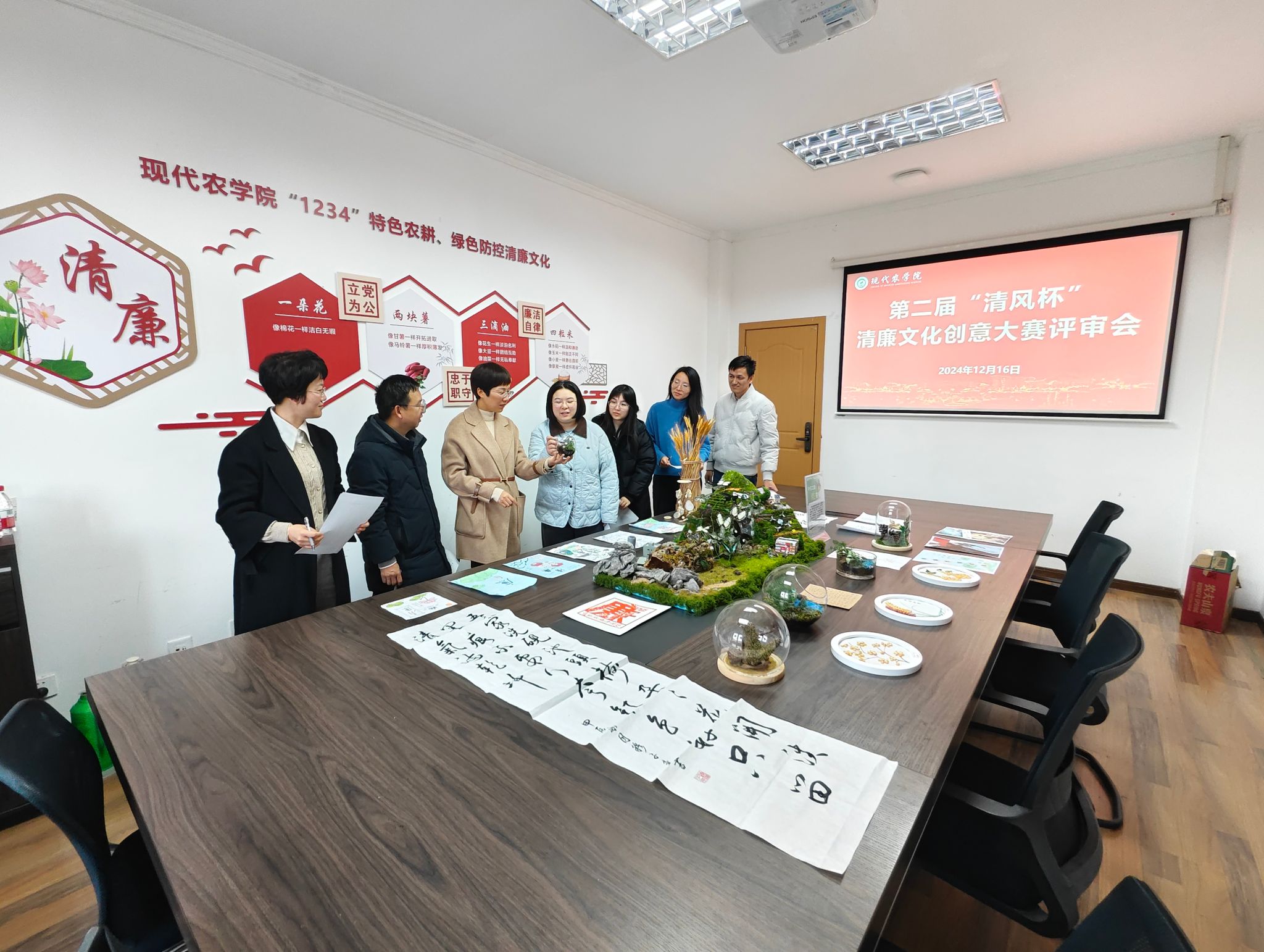 近日,农学院在学15-606举办第二届“清风杯”廉洁文化创意大赛评比活动。农学院党委书记梁卫玲及相关负责人全程指导,并参与入围作品最终评审。农学院全体纪委委员、学生办辅导员参加活动。