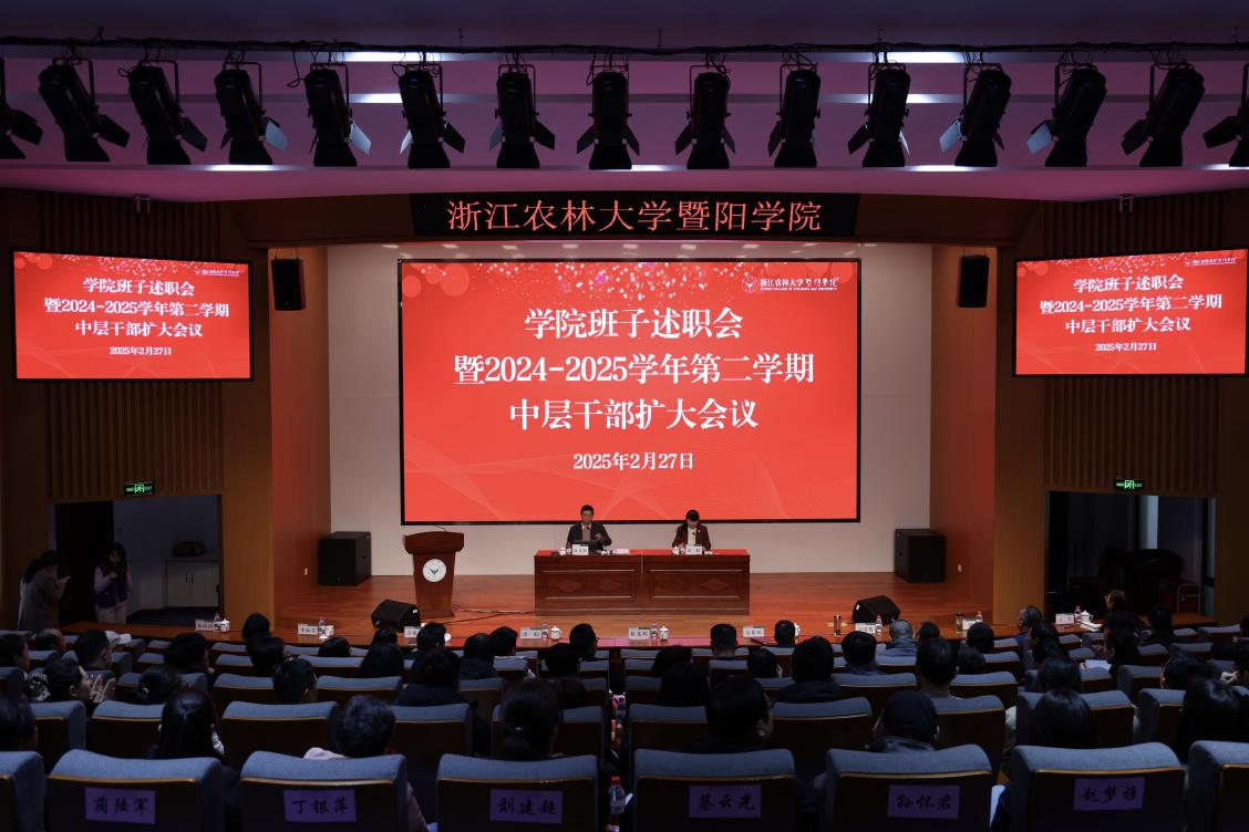 2月27日,暨阳学院班子述职会暨2024-2025学年第二学期中层干部扩大会议在学院智能报告厅召开。