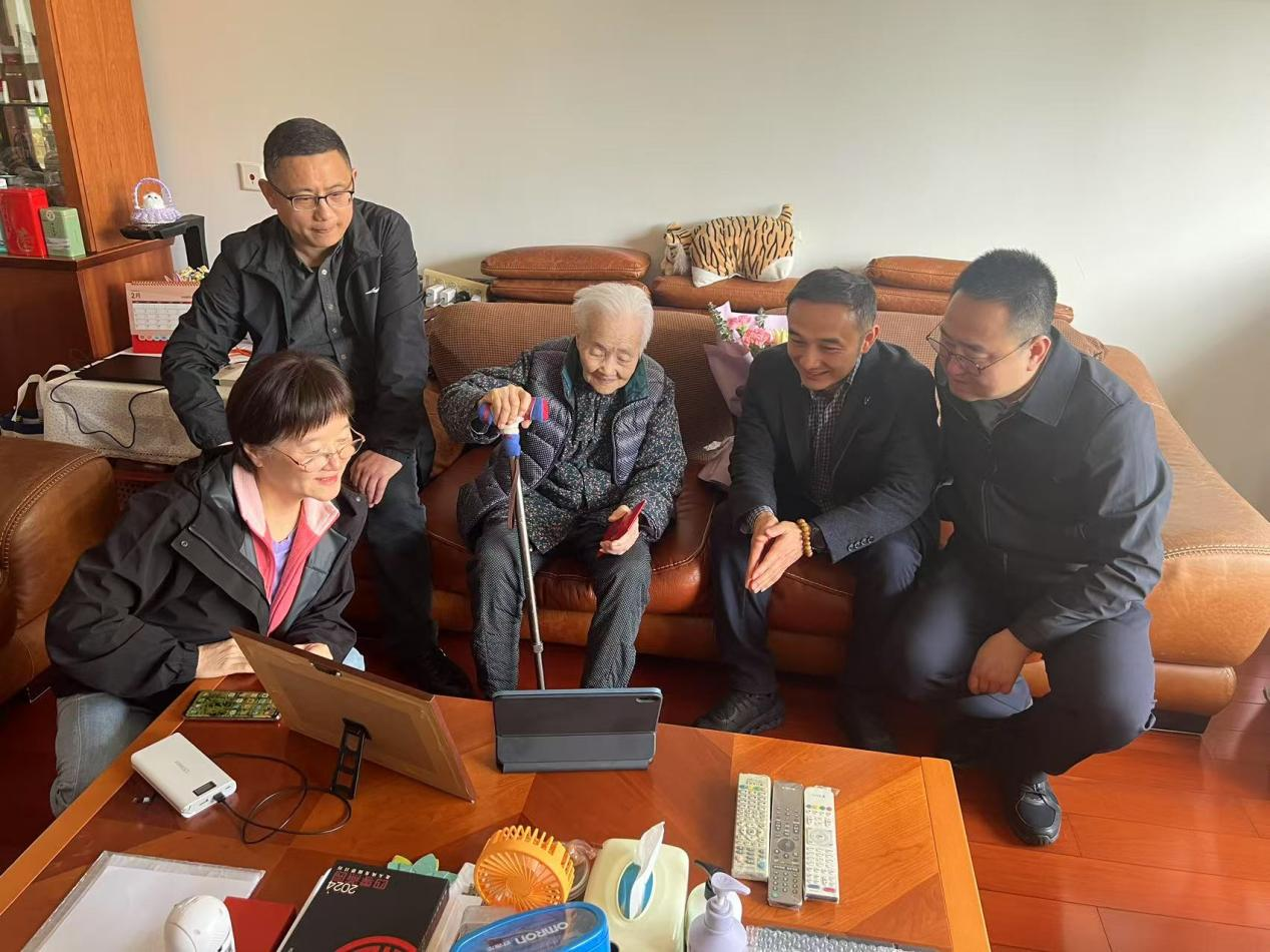 近日,后勤中心主任、党委书记陈审声以及后勤中心和校党委组织部相关负责人走访慰问了后勤中心百岁退休职工刘岭梅女士。