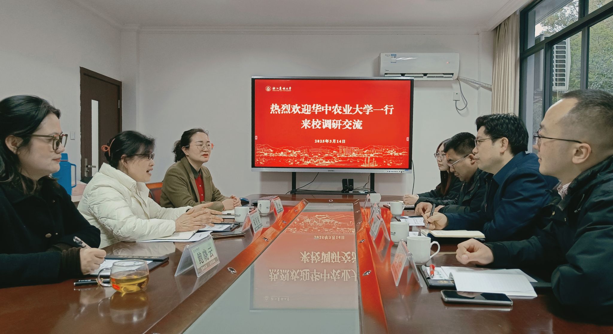 3月14日,华中农业大学研究生院处长蔡江一行来校调研研究生管理工作,研究生院院长宋丽丽及相关领导参加了座谈。