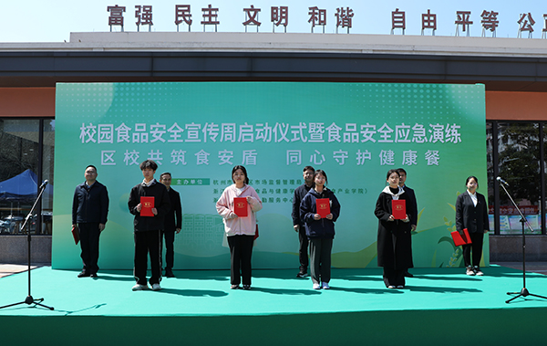 活动中,闵伟红宣布校园食品安全宣传周活动启动。张友青、朱军为临安区食品安全宣传员颁发了聘书。