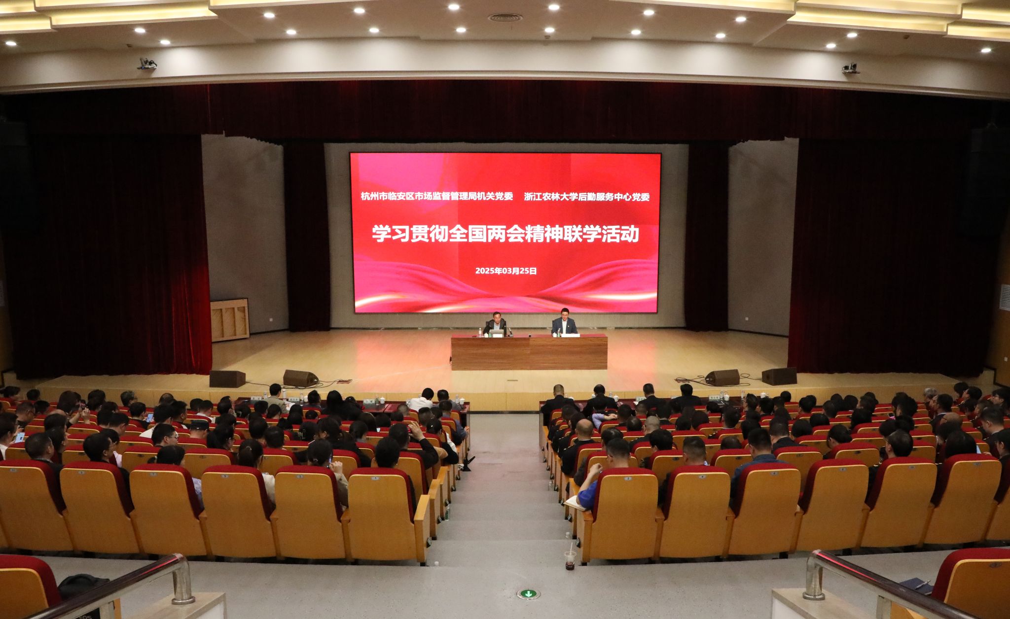 3月25日,后勤中心党委联合临安区市场监督管理局机关党委开展学习贯彻全国两会精神联学活动。活动邀请了BEAT365马克思主义学院周柏春教授作学习全国两会精神专题辅导。临安区市场监督管理局党委班子成员、局属全体党组织书记、全体党员;后勤中心党委理论学习中心组成员、各党支部书记、全体管理干部及全体党员参加会议。
