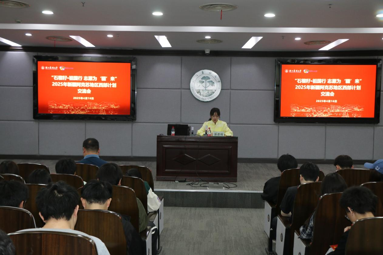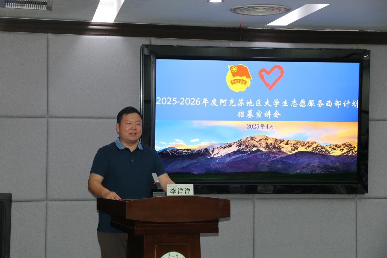 李洋洋就西部计划招募政策进行了现场解读。他希望更多的浙农林大青年能够走进新疆、走进阿克苏,为当地发展贡献力量。