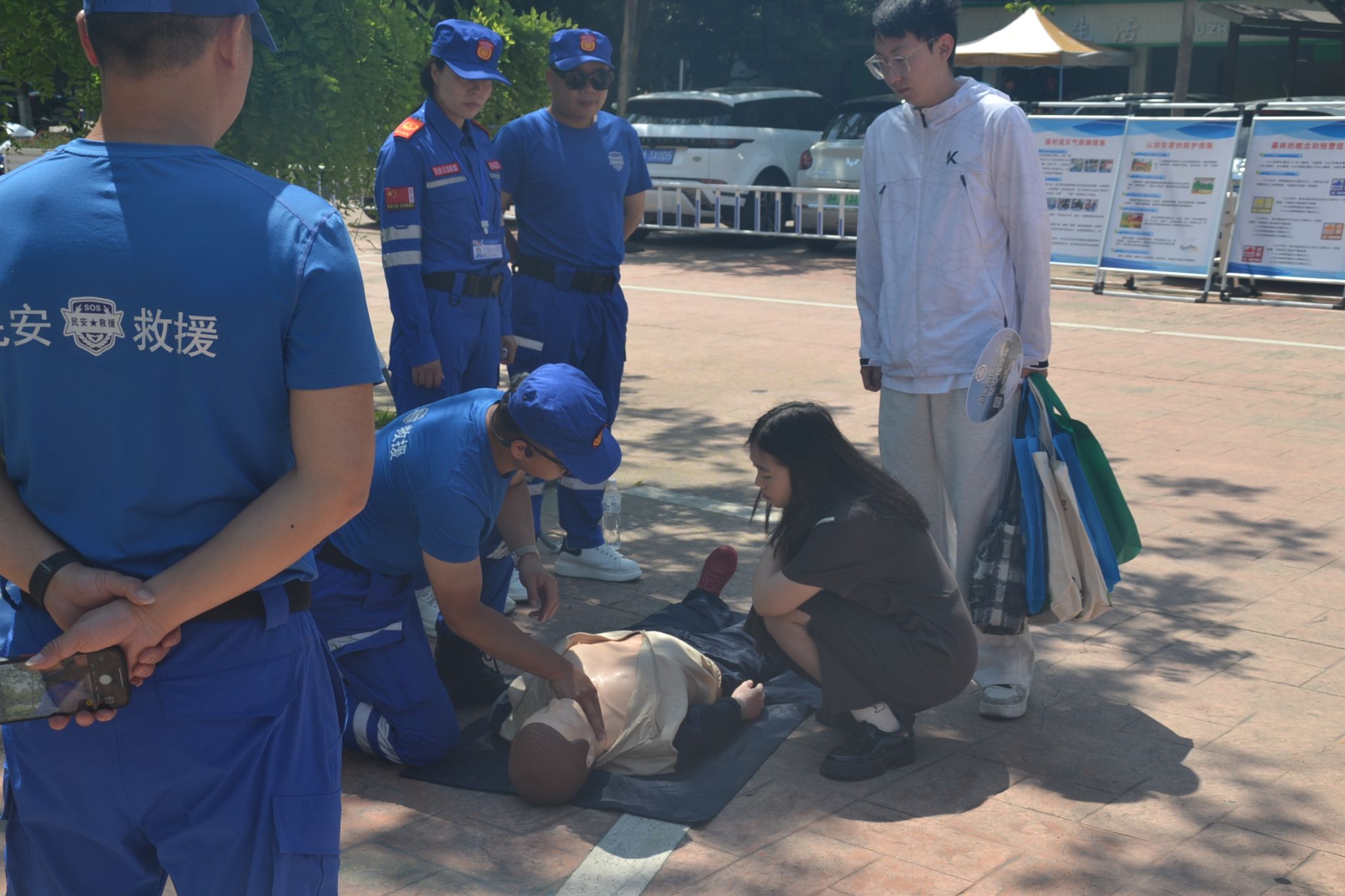 本次宣传活动以师生喜闻乐见的形式开展。现场设19个宣传和互动点位,结合展板资料宣传、应急救援装备展示、海姆立克急救、心肺复苏、AED心脏除颤体验等活动,通过现场体验、互动抽奖和宣传讲解的方式,向师生讲解了山洪、暴雨、台风、地震等自然灾害防灾救灾及自救互救知识。活动现场师生参与踊跃,互动频繁。