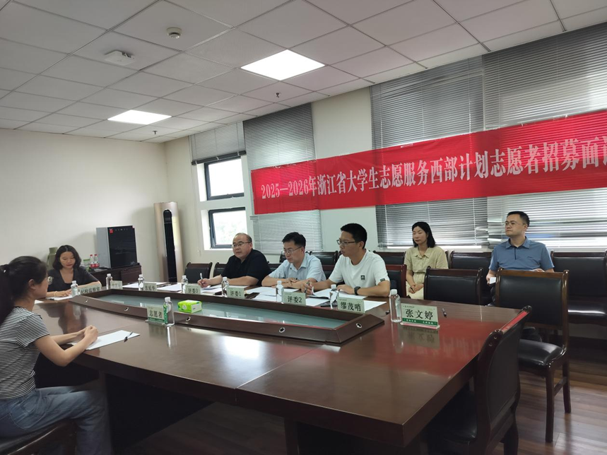 为响应团中央“到西部去、到基层去、到祖国和人民最需要的地方去”的号召,学校项目办于5月16日、5月22日开展了2025-2026年浙江省大学生志愿服务西部计划志愿者BEAT365英国官网招募选拔工作。