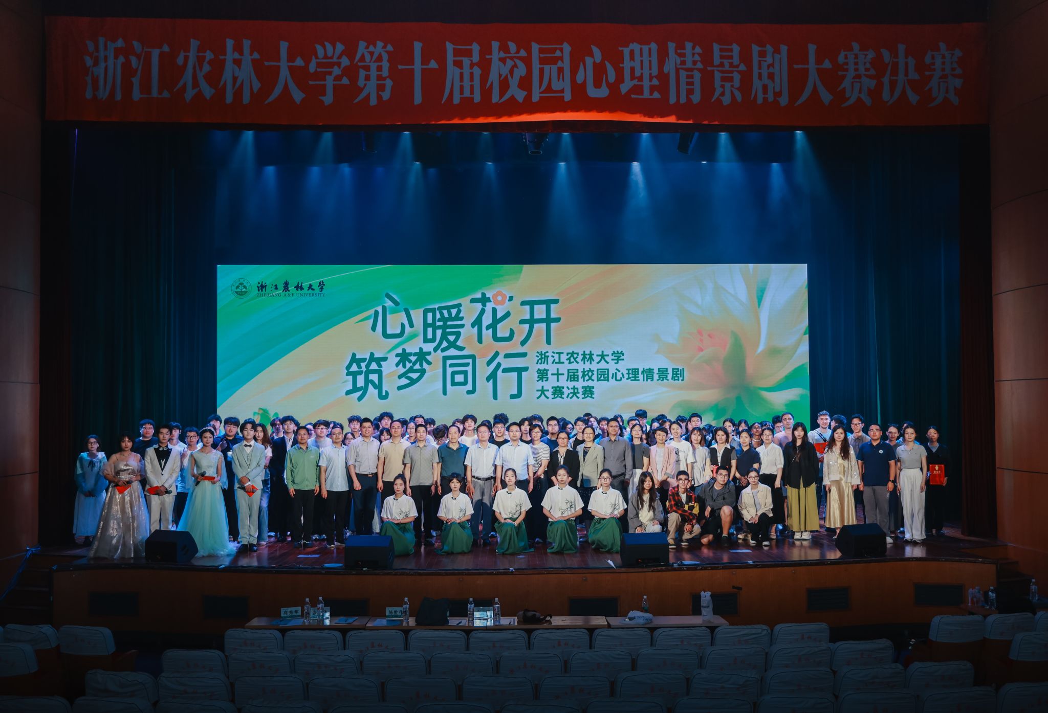 5月27日晚,由学工部、学生处主办,心理健康教育中心与环资院、碳中和学院心理辅导站联合承办的第十届校园心理情景剧大赛决赛在东湖校区活动中心影剧院圆满落幕。本届大赛以“心暖花开,筑梦同行”为主题,旨在通过情景剧形式普及心理健康知识,引导学生关注自我成长,构建和谐校园心理生态。相关职能部门负责人、学院学生工作负责人、学院心理辅导站站长及各学院师生代表共同观看了比赛,现场座无虚席,气氛热烈。