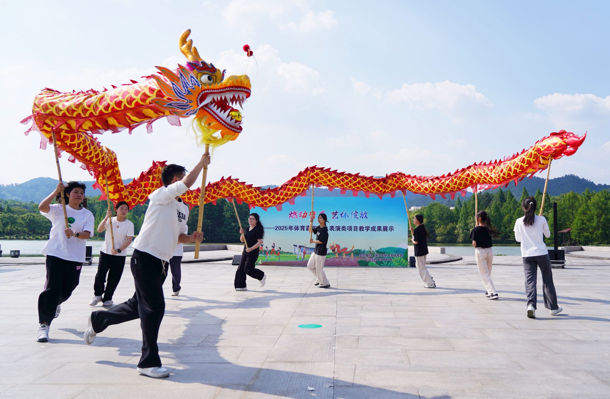 5月29日,“燃动青春 艺体农林——2025年体育嘉年华之表演类项目教学成果展示”在五舟广场举行。活动以一曲空灵婉转的《天空》拉开序幕。