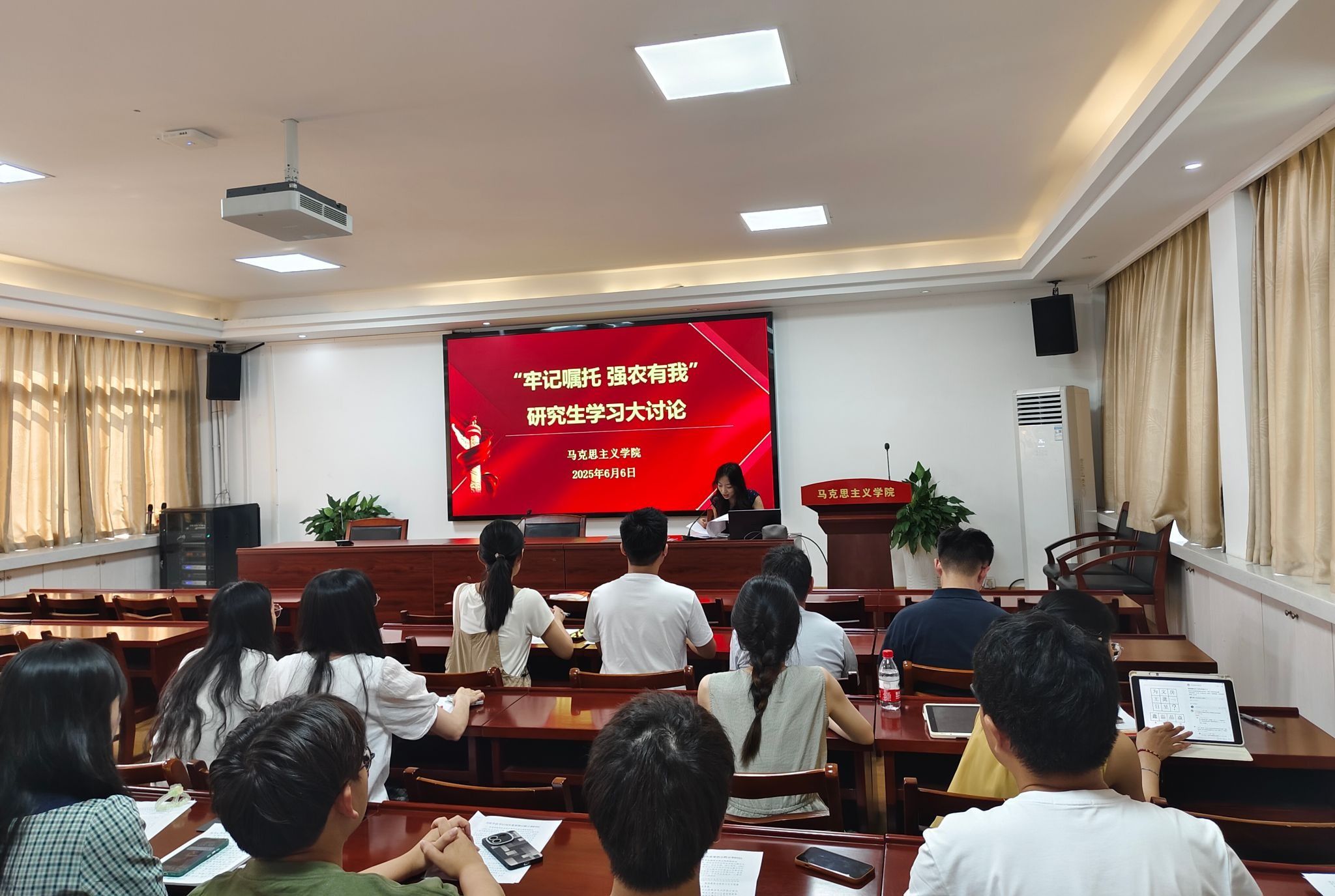 马院组织全院师生系统梳理、逐篇精学,集体重温学习习近平总书记历次重要指示批示和回信精神,开展“我为高水平大学建设献一策”活动。活动结合学院特色与发展规划,重点围绕如何将习近平总书记提出的“以立德树人为根本,以强农兴农为己任”等重要要求,有机融入思政课教学与研究,发挥马克思主义理论学科在服务乡村振兴中的引领作用。师生纷纷建言献策,共绘发展蓝图,展开了热烈而富有建设性地研讨。