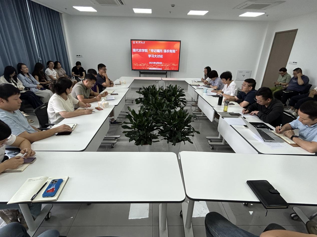 6月4日,农学院开展“牢记嘱托 强农有我”学习大讨论暨“走一线听建议、转作风促发展”大调研座谈会。农学院领导班子成员、青年骨干教师参加会议。