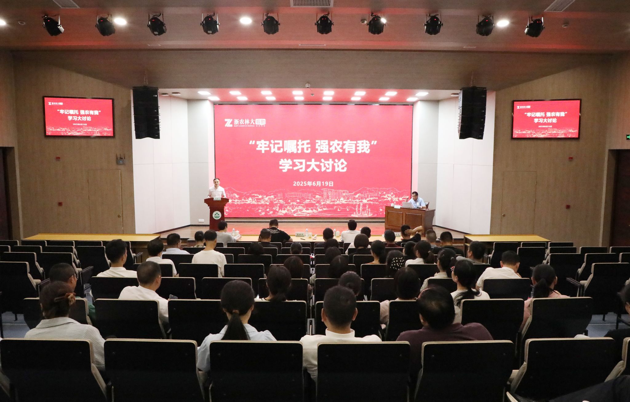 6月19日,后勤中心开展“牢记嘱托 强农有我”学习大讨论活动,全体党政班子成员,管理二、三级岗参加学习。活动由后勤中心主任、党委书记陈审声主持。