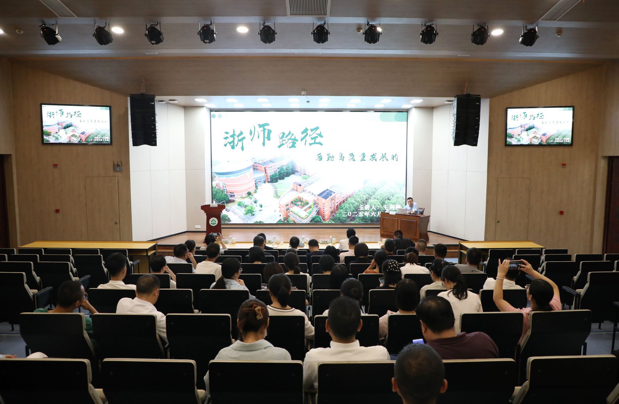 活动邀请浙江省教育后勤基建协会秘书长王利明主讲。他作题为《后勤高质量发展的浙师路径》的专题讲座,结合建设一流后勤的浙师路径,分享了一流高校建设要有一流后勤的宝贵实践经验,全面梳理后勤管理科学化的核心理念,深入剖析后勤高质量发展的堵点、痛点和难点。他表示,建设符合高等教育发展规律要求,有效支撑学校建设发展的一流后勤服务体系,要做到保障有力、服务规范、运行高效、监管到位、竞争有序,着力打造开放、绿色、智慧、育人、品质、清廉、平安的高校后勤,使师生生活更加美好、育人功能更加凸显、治理体系更加完善、保障功能更加强劲、人力资源更加高效。