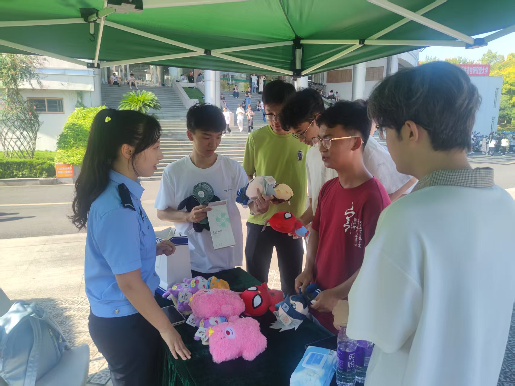 活动现场设置反诈大转盘、反诈连连看、交通圈圈乐、安全保卫战、安全知识科普和安全拍照6个打卡点,并设置了民警现场直播、新生面对面交流体验区,现场新生通过完成任务集齐印章后,可获得精美礼品。整场活动突出知识性和趣味性,寓教于乐,全体新生在互动体验中,增强了安全防范意识和能力,取得了较好的宣传互动效果。
