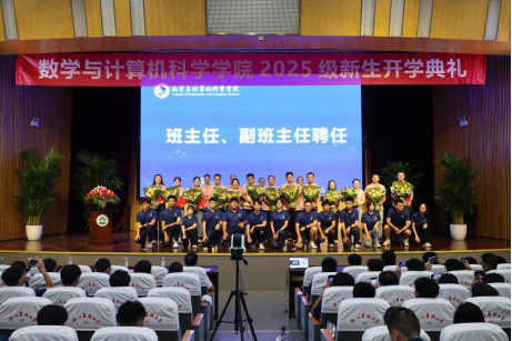 9月16日下午,数学与计算机科学学院2025级新生开学典礼在图书馆第一报告厅举行。学院党委书记何振波,学院2006届计算机专业毕业校友、杭州感知科技有限公司董事长杨来邦总经理,各专业负责人、全体辅导员、新生班主任、副班主任和老生代表等参加典礼,共同见证527名2025级本科、研究生新生开学时刻。