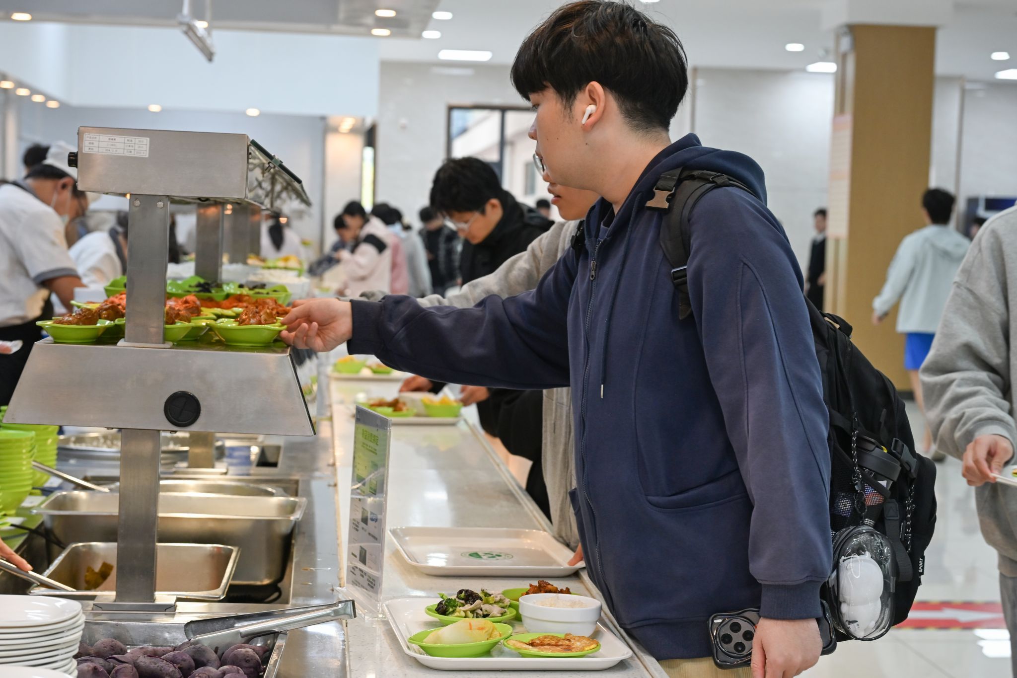 临近午时,各食堂内卤香四溢,窗口早已排起长龙。一盘盘刚出锅的鸡腿色泽红亮、热气氤氲,成为当日最受欢迎的“硬菜”。食堂阿姨们热情洋溢地招呼前来就餐的师生领鸡腿,校友们则结伴知己好友,纷纷到食堂打卡这份专属仪式感,品尝记忆里的美味。据悉,此次活动得到BEAT365食健学院的鼎力支持,将科研成果栀子融入美食,烹饪出兼具营养健康与独特风味的养生鸡腿,深受师生喜爱。
